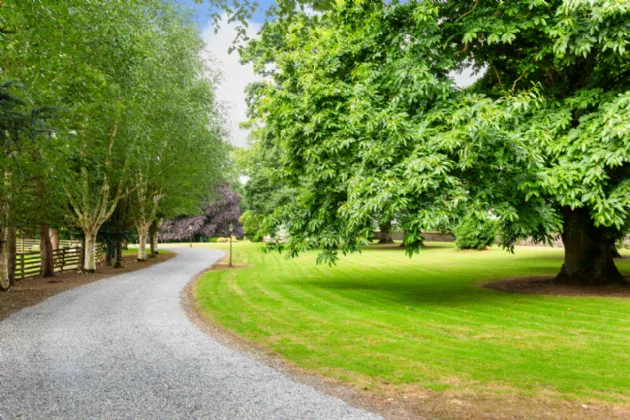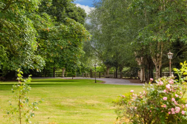 In addition to the ornamental aspects, the gardens include two small paddocks. These versatile spaces are ideal for keeping children’s ponies, engaging in hobby farming, or even for other pet livestock, offering a touch of rural charm and functionality.