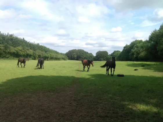 While the pasture, paddocks and woodlands bring great privacy, they also offer wonderful walks and rides. There are secluded seating spots, a man-made pond, and so much space to dream and explore whether on foot or horseback. A series of cross-country jumps connects the fields.