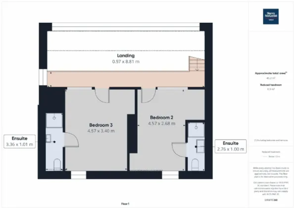 Ensuite 3.36m x 1.01m wc, handbasin and electric shower
