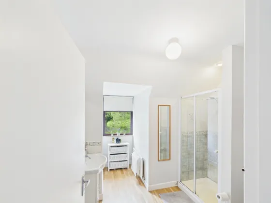 Shower Room 3.25m x 2.3m with shower, wc, handbasin and oak floor