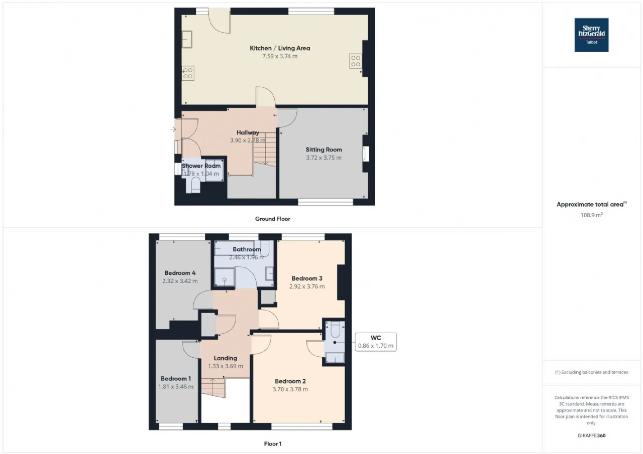 Sitting Room 3.75m x 3.72m with open fireplace and carpet flooring