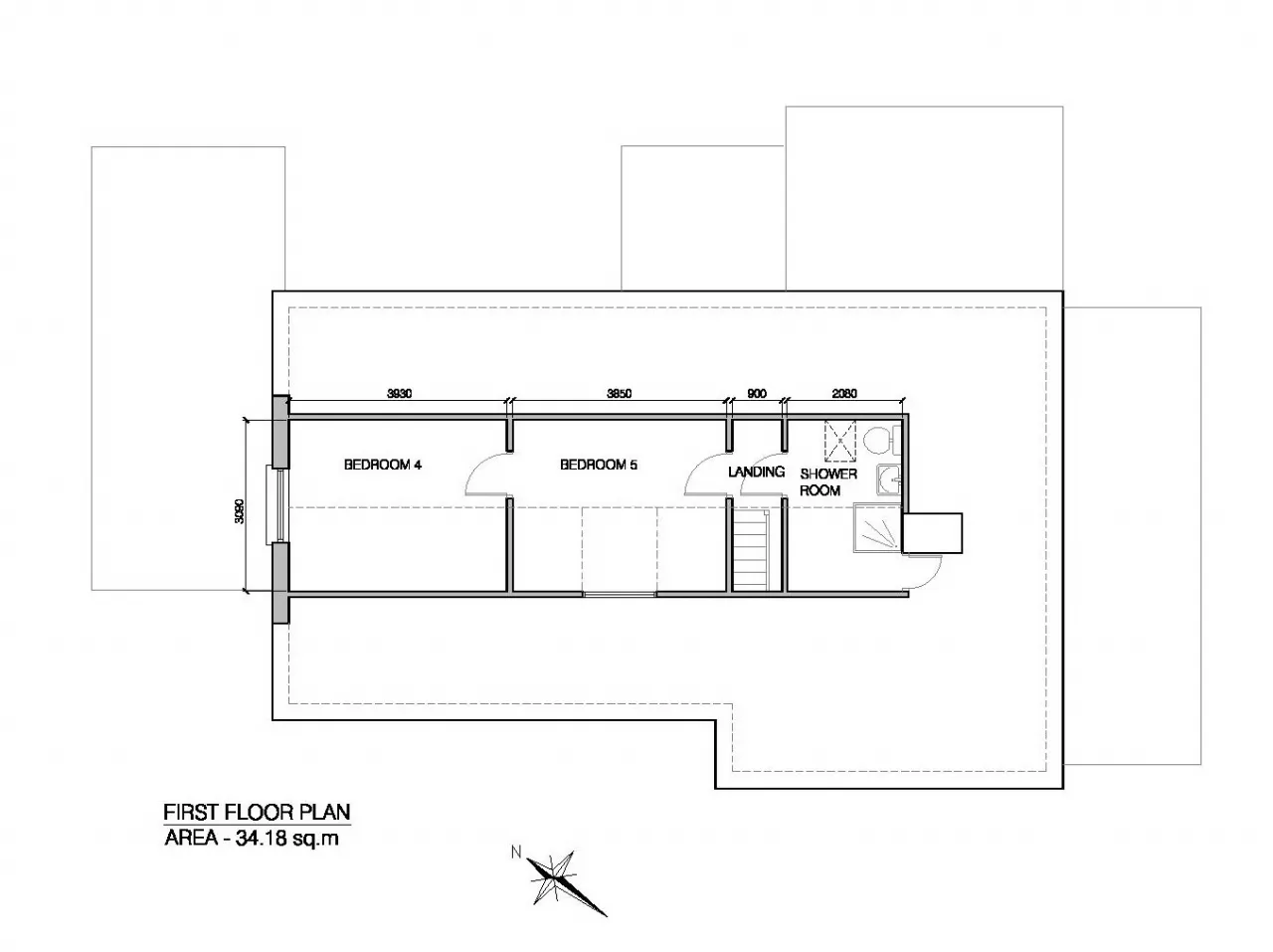 First Floor: Two additional bedrooms and a shower room.