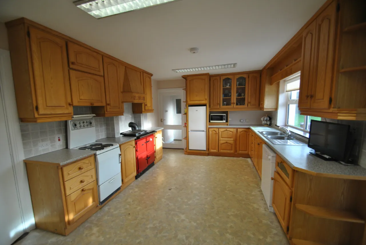 Kitchen 5.38m x 3.54m Great range of Oak fitted units. Oil fired Stanley cooker. Door to conservatory.
