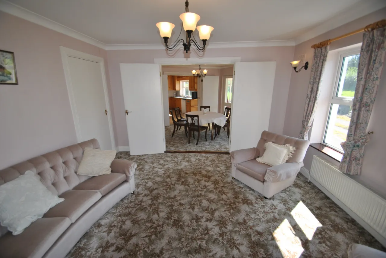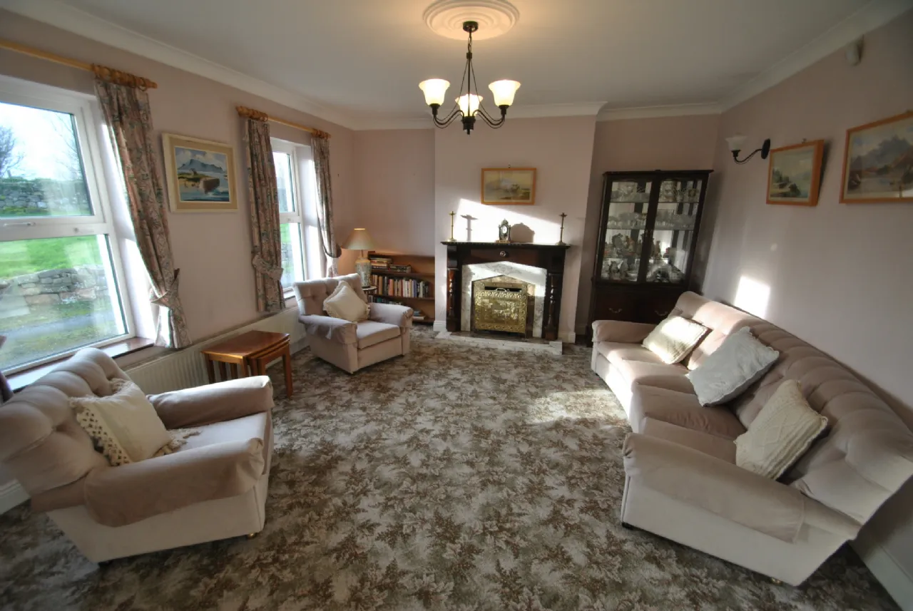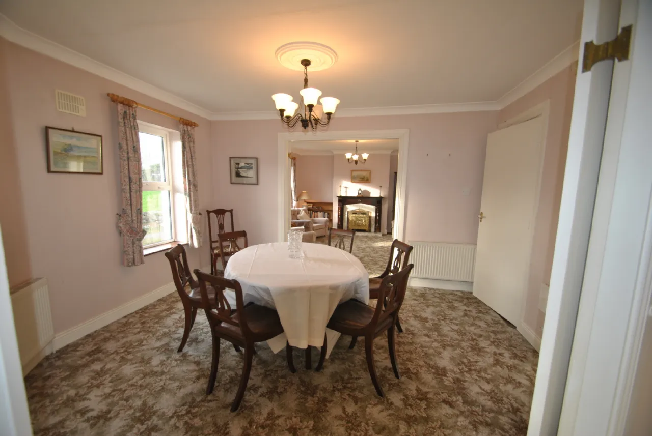 Sitting Room 4.77m x 3.96m Open fireplace. This room interconnects with the dining room & kitchen.