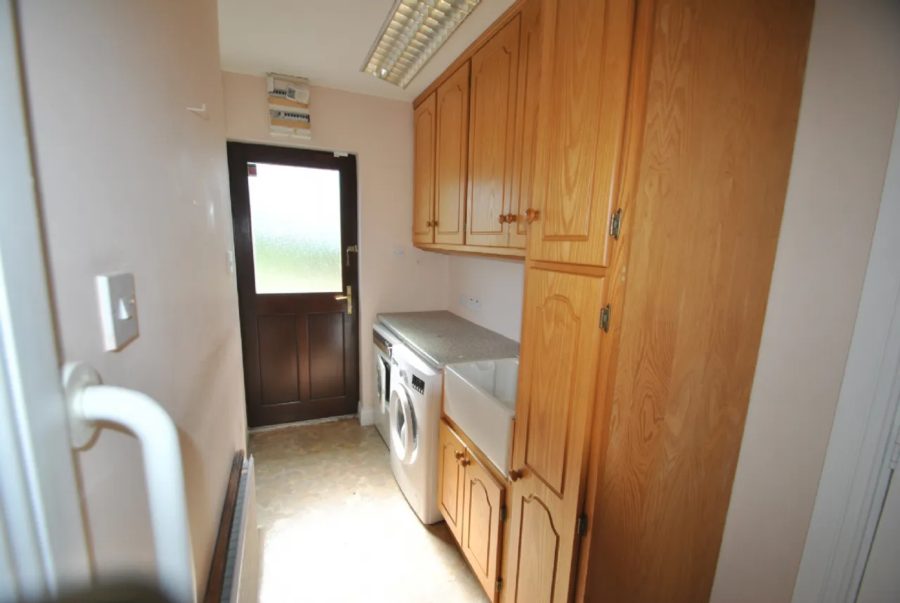 Utility room 3.70m x 1.46m Stairs to garage and workroom.