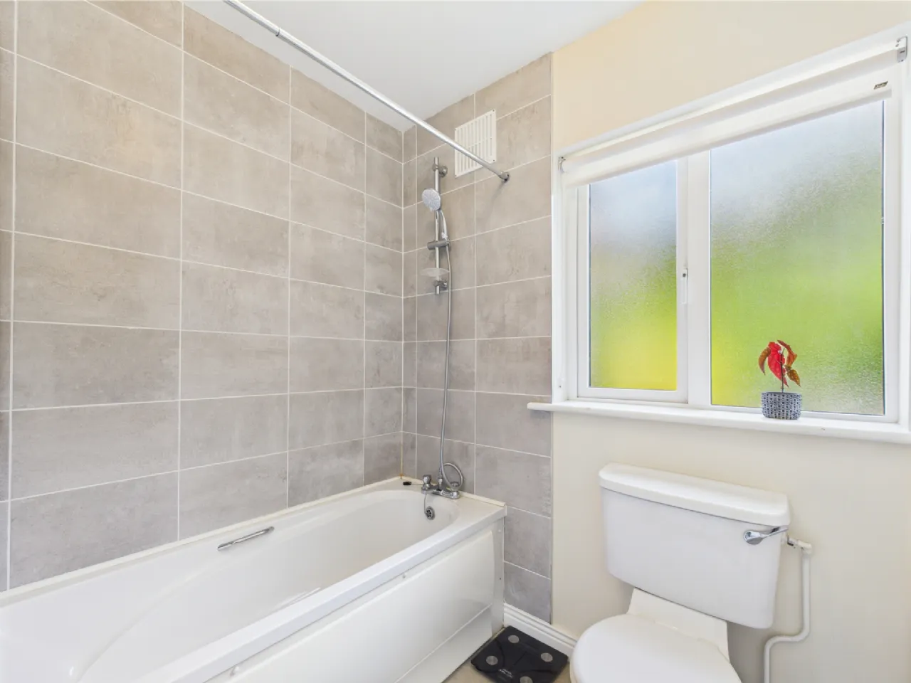 Bathroom 2.08m x 1.87m With W.C, W.H.B, Bath / Shower and tiled floor to ceiling