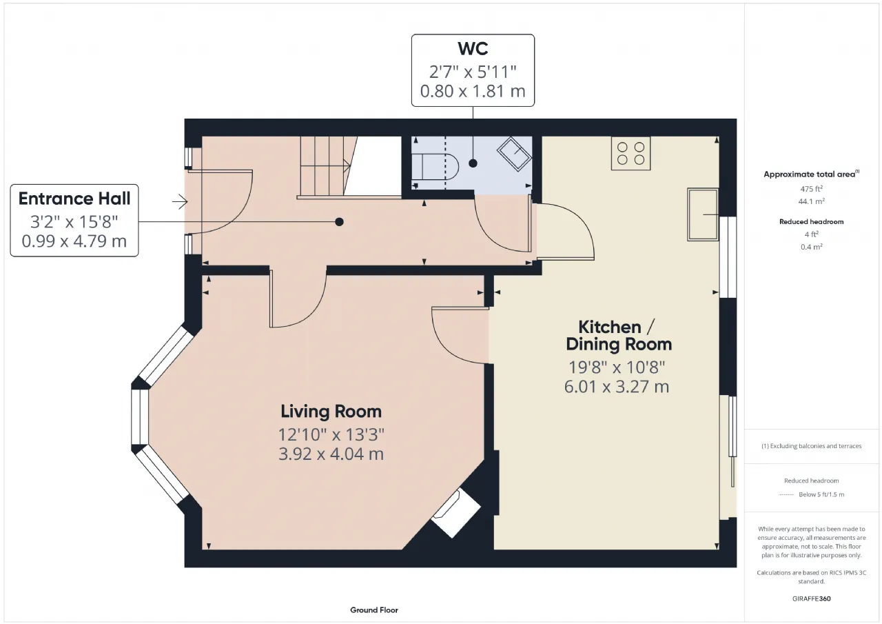 Kitchen / Dining Room 6.01m x 3.27m With modern fitted Kitchen, laminate flooring, plumbed floor washing machine and sliding doors to rear Garden