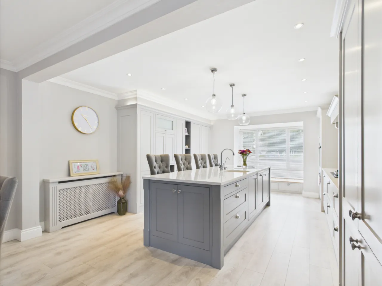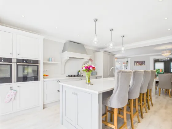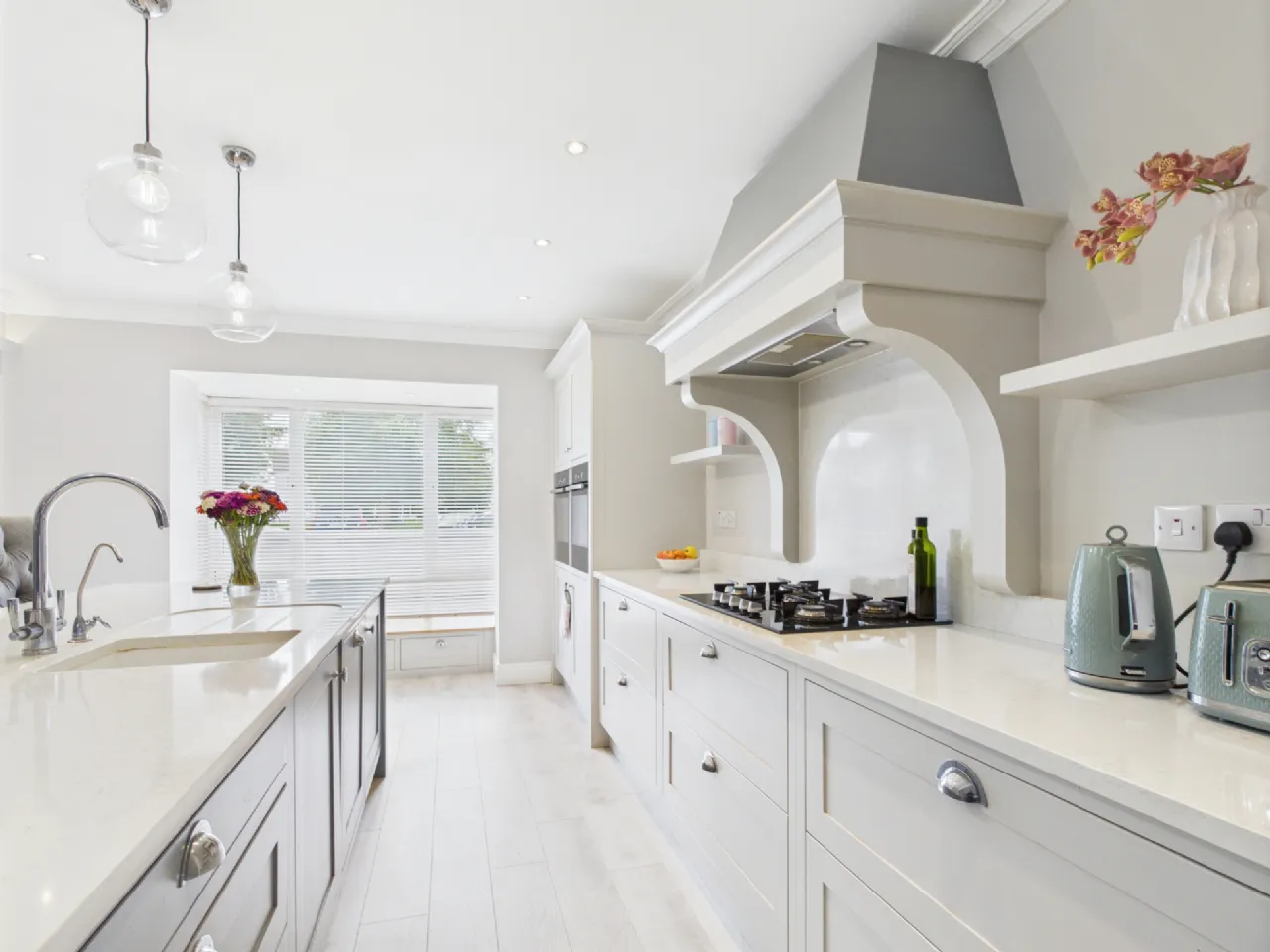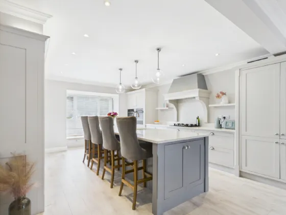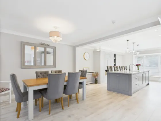 This superb home offers spacious and extended accommodation of approx. 1,852 Sq.Ft / 172 Sq.M, thoughtfully upgraded and meticulously maintained by its current owners. The property boasts a high-quality finish throughout, with a beautifully appointed open-plan Kitchen / Diningroom featuring a large island and direct flow into an elegant Sittingroom overlooking the sunny west-facing rear garden.