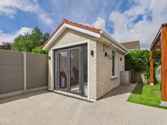 A detached Garden Room to the rear provides a versatile space ideal for a Home Office, Studio or Gym, while a charming veranda and resined rear patio offer the perfect setting for outdoor entertaining.
