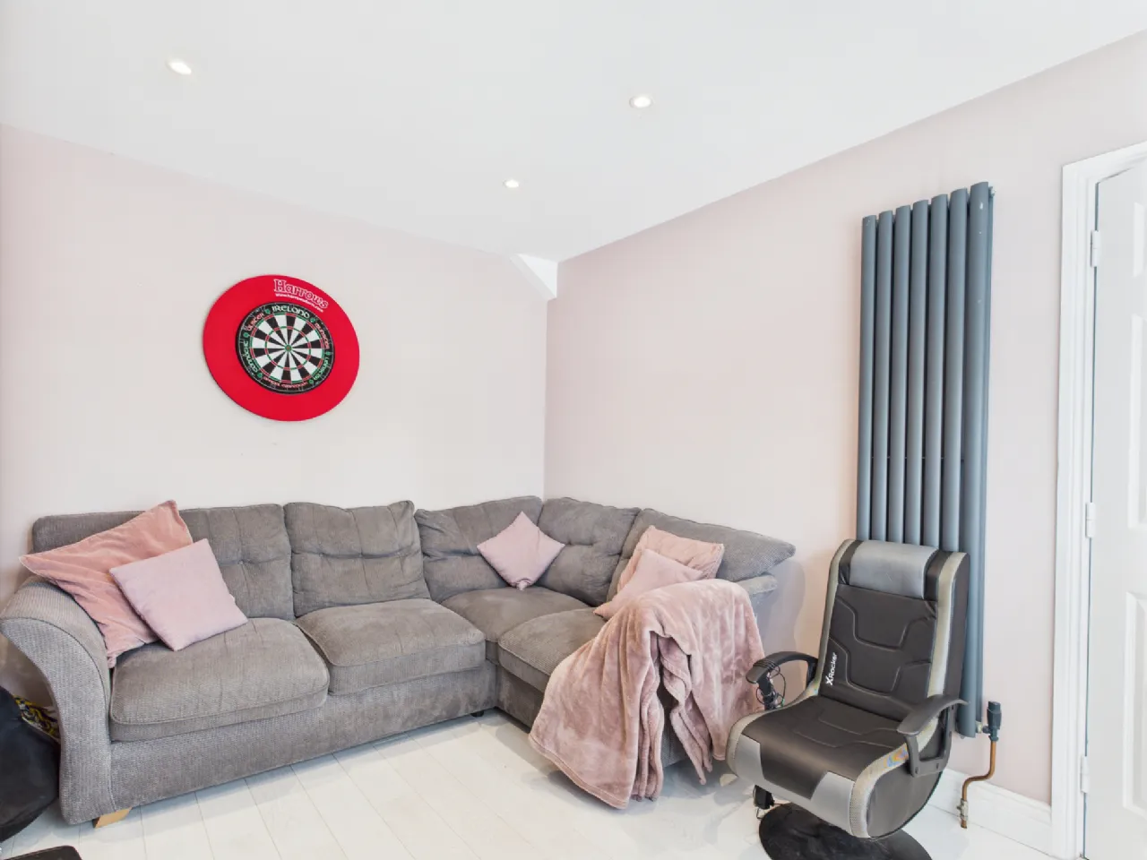 The accommodation also includes a downstairs reception room, currently used as a Playroom / Lounge / Den for children—though it could easily function as a Home Office or even a 5th Bedroom, along with a spacious Utility Room and Guest W.C.