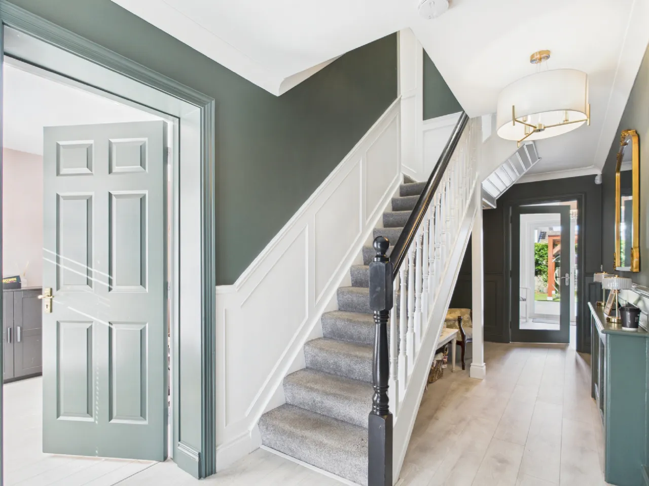 Upstairs, there are four generously sized Bedrooms, including a Master Bedroom with Ensuite and large Walk-in Wardrobe. Ample fitted storage is provided throughout the home, further enhancing practicality and comfort.
