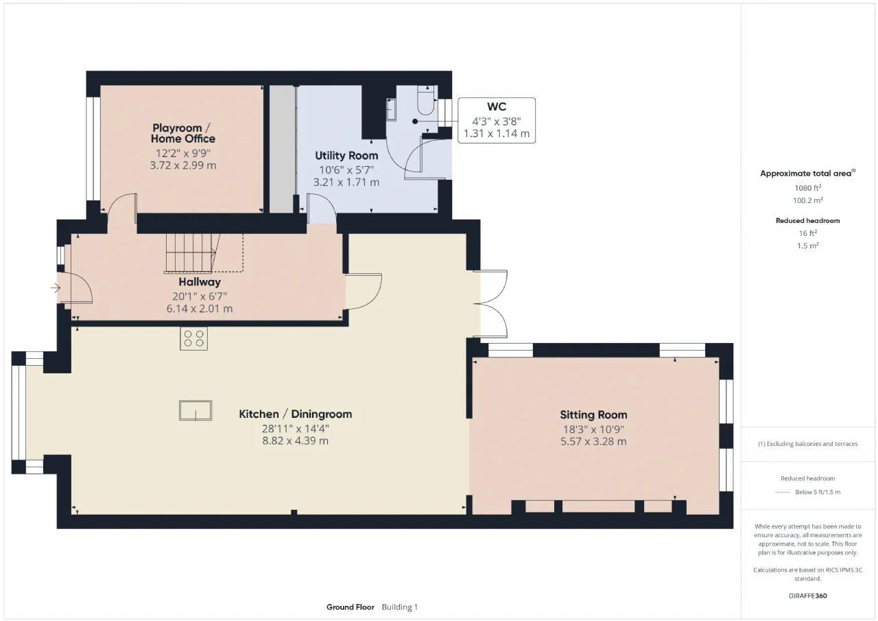 Entrance Hall, Sittingroom, open-plan Kitchen / Diningroom, Utility Room, Guest W.C., Playroom / Lounge / Den.
