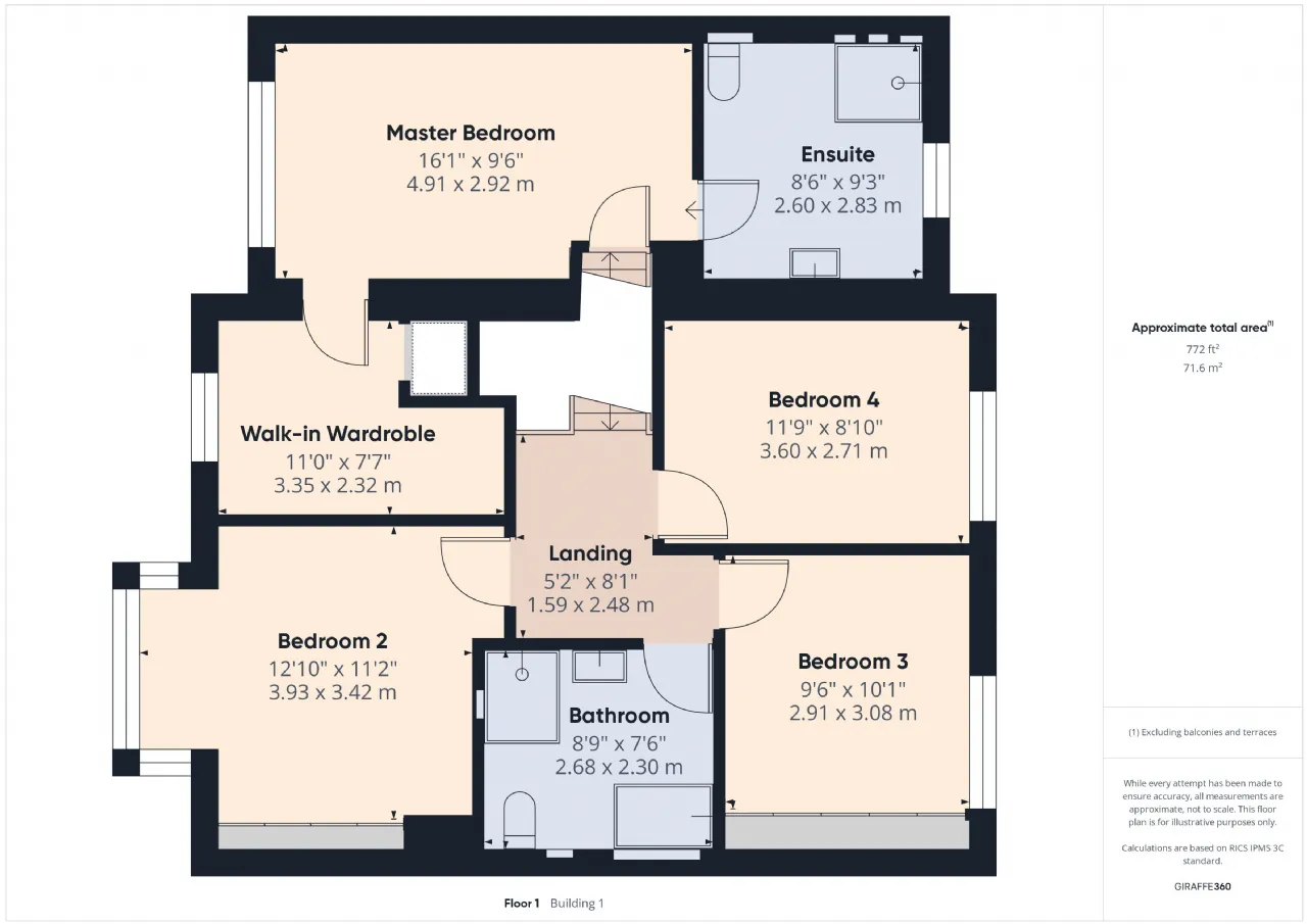 Landing, 4 no. Bedrooms (Master with Ensuite and Walk-in Wardrobe), Main Bathroom.