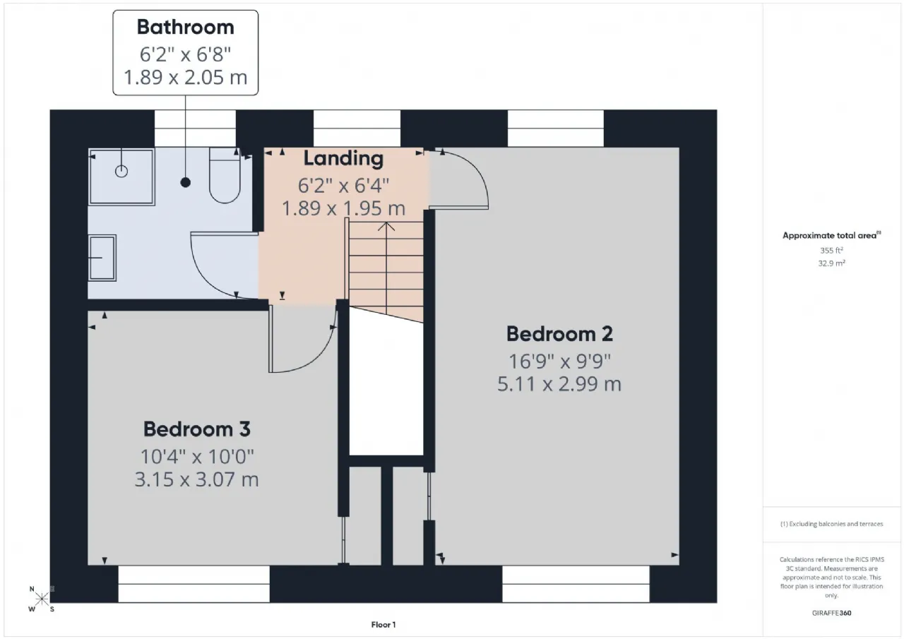 Landing 1.89m x 1.95m With access to attic.