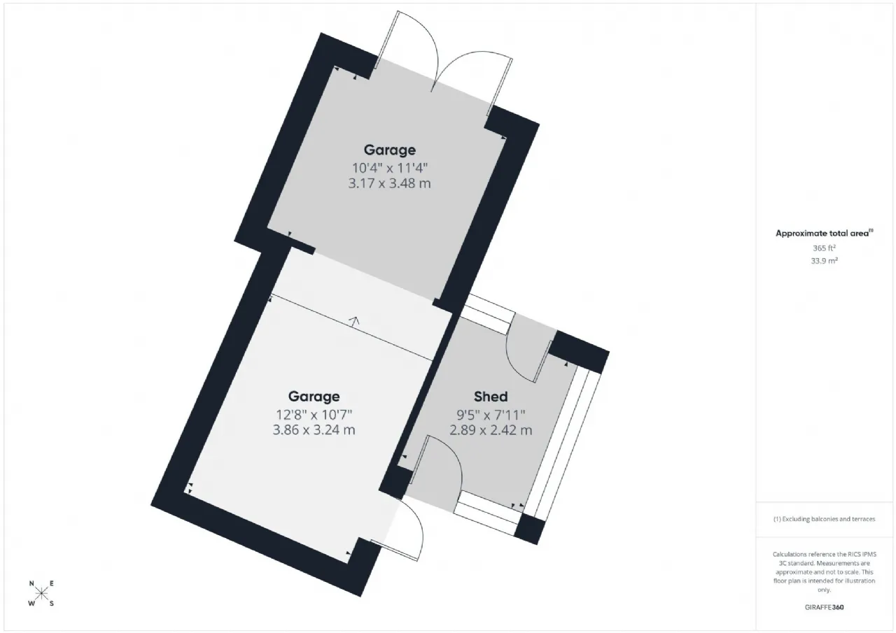 Garage 3.17m x 3.48m Ideal for storage.