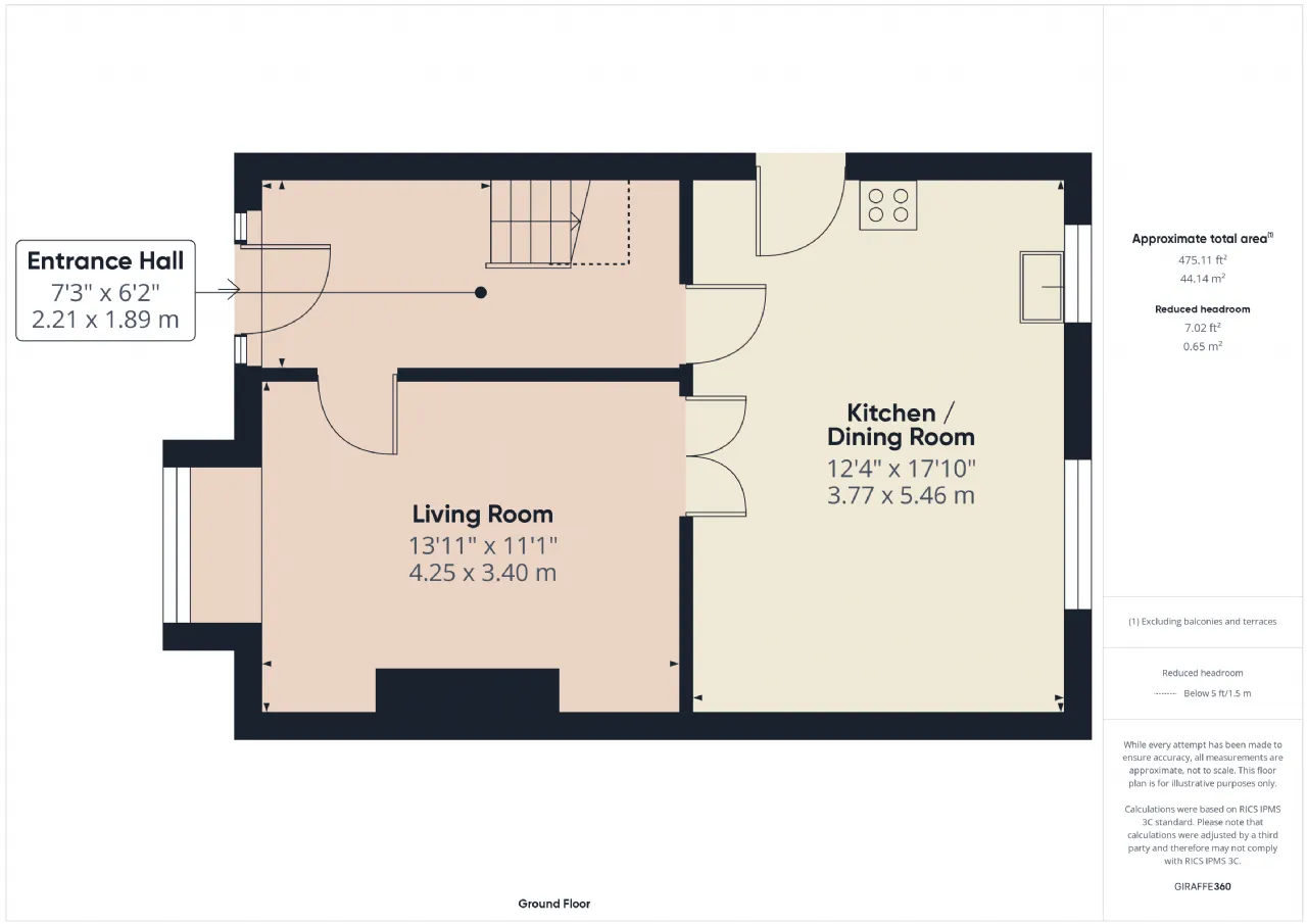Kitchen/Dining Room 3.77m x 5.46m Open plan Kitchen / Dining Room with fitted Kitchen, French Doors to Living Room and access to rear Garden