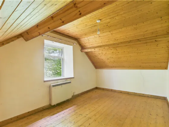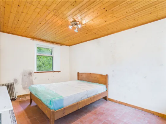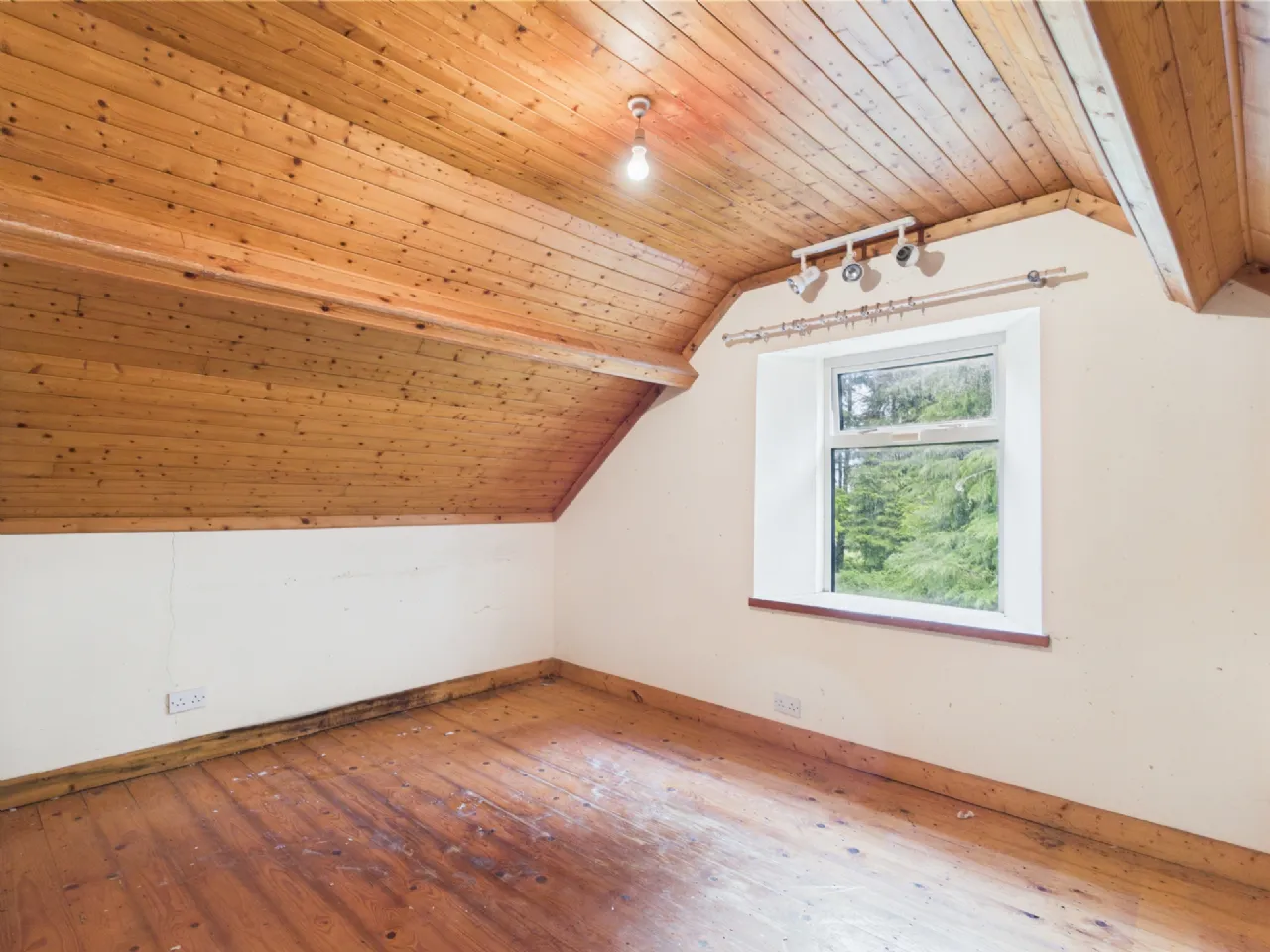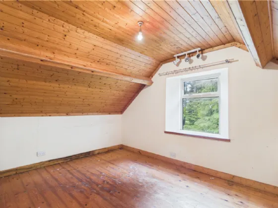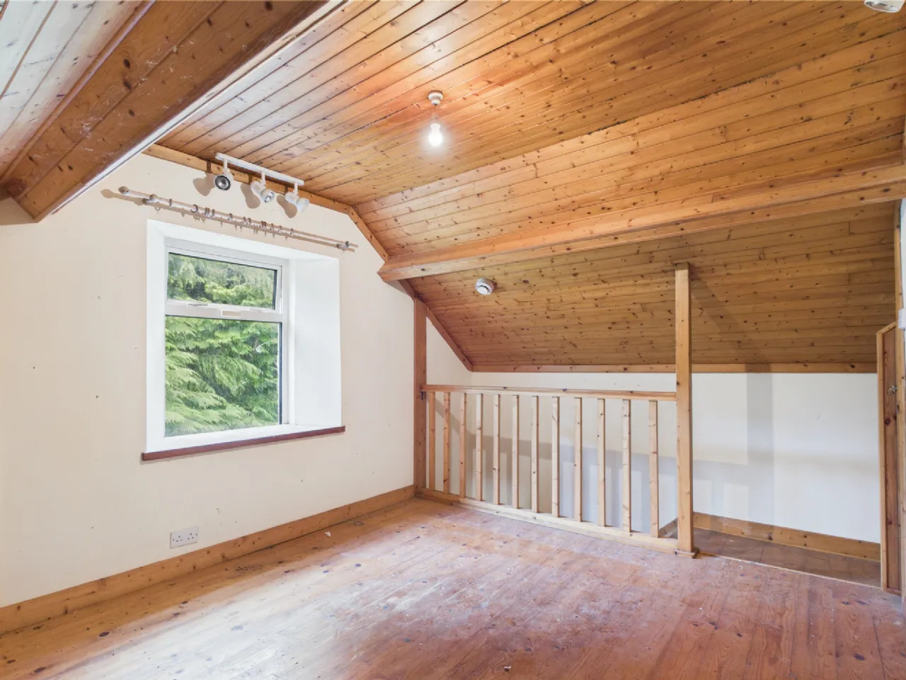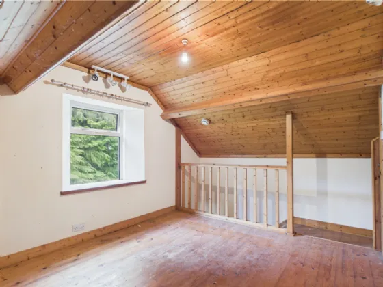The residence comprises a two-storey cottage extending to approx. 643 Sq.Ft / 60 Sq.M, set on a substantial site of approx. 0.9 Acres. Internally, the ground floor layout includes a central Entrance Hall, Kitchen / Diningroom, Bathroom, and one Bedroom. The upper floor offers two additional rooms currently laid out as a Bedroom and an Office / optional third Bedroom.