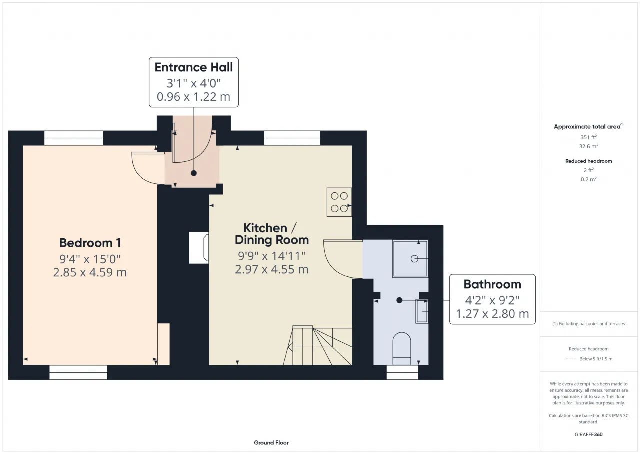 Entrance Hall, Kitchen / Diningroom, Bathroom, Bedroom 1