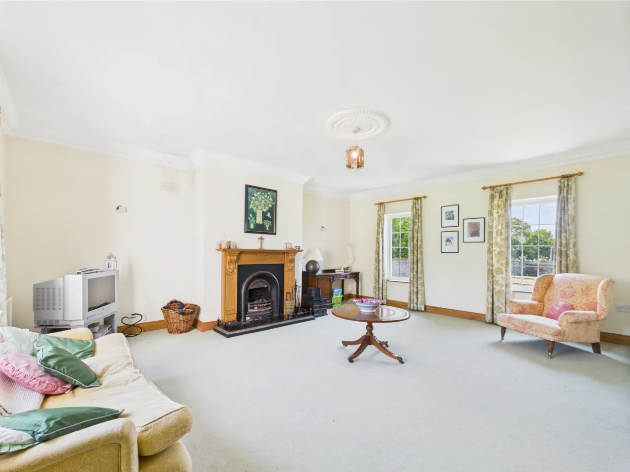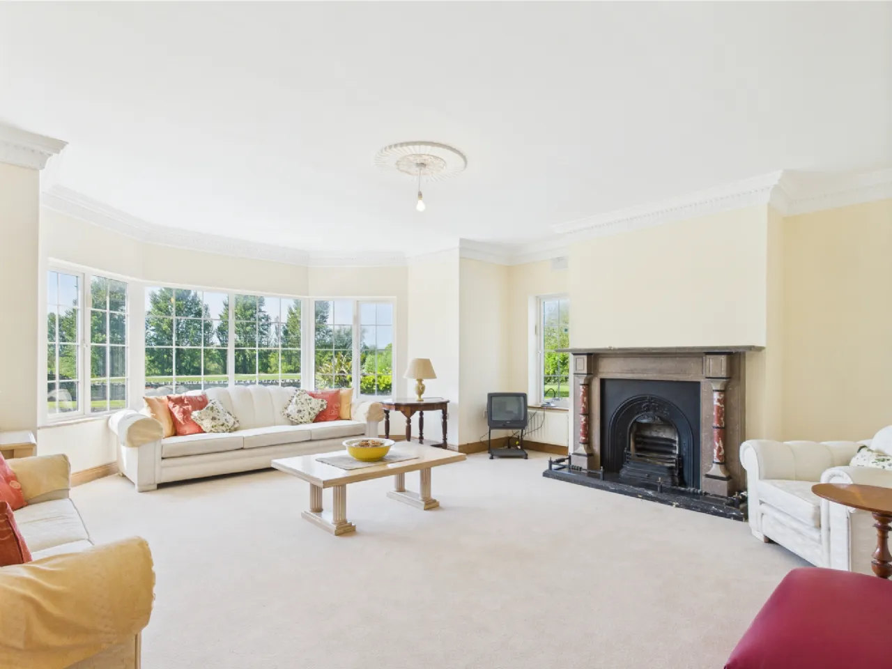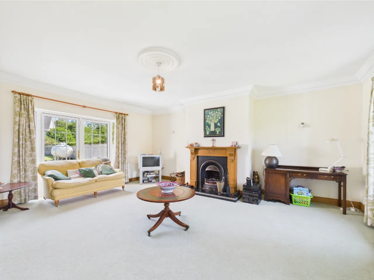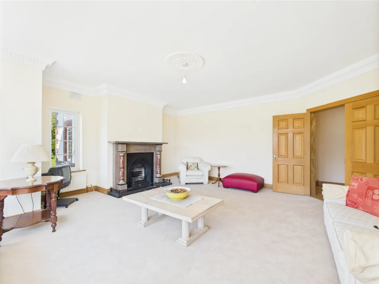 Living Room 5.91m x 5.04m Large Living Room with open fire, cove cornice, ceiling rose, French doors to rear Garden and French doors to hallway