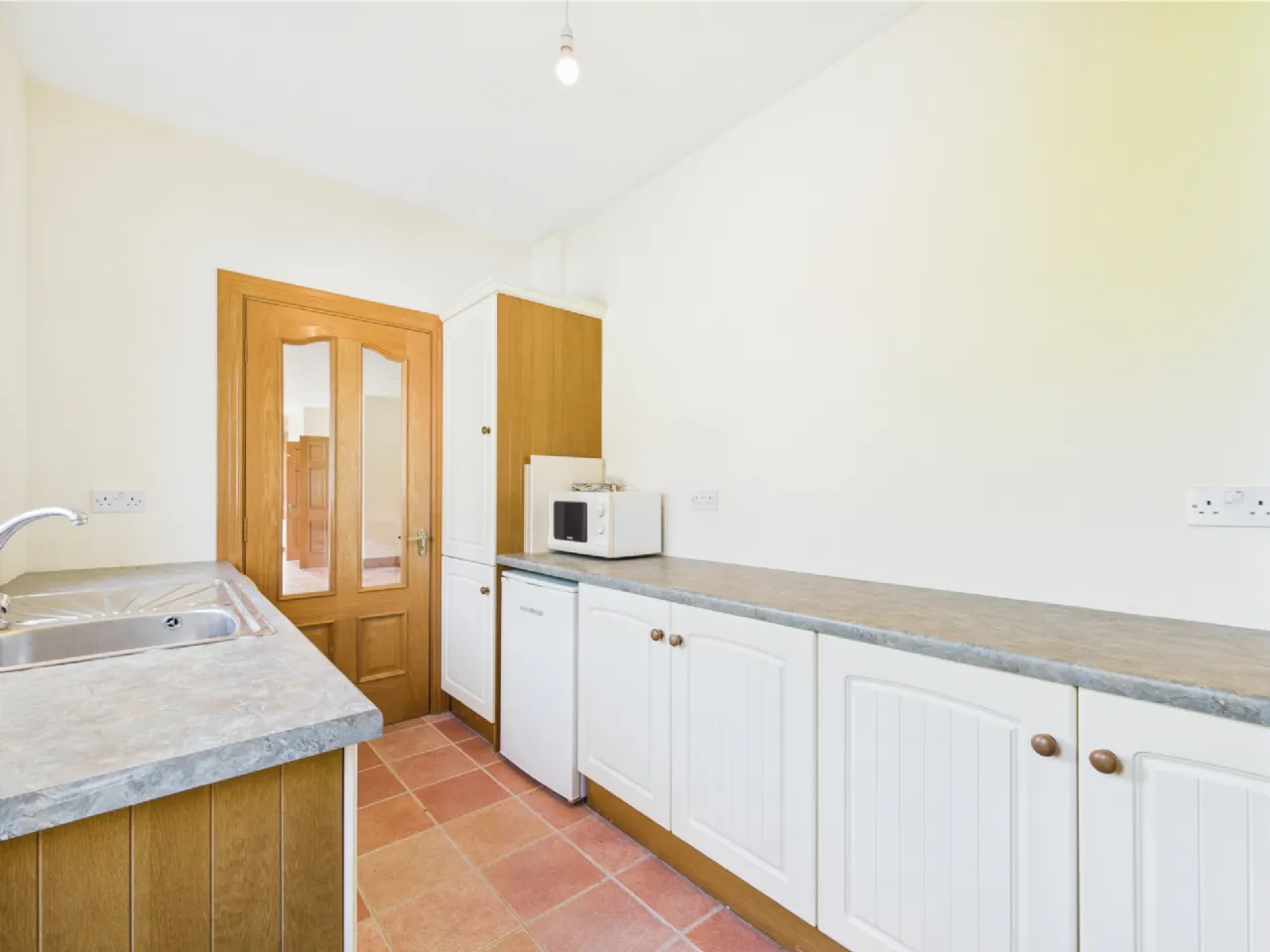 Utility Room 2.15m x 3.23m With wall / base units, tiled flooring, plumbed for washing machine, access to W.C and rear Garden
