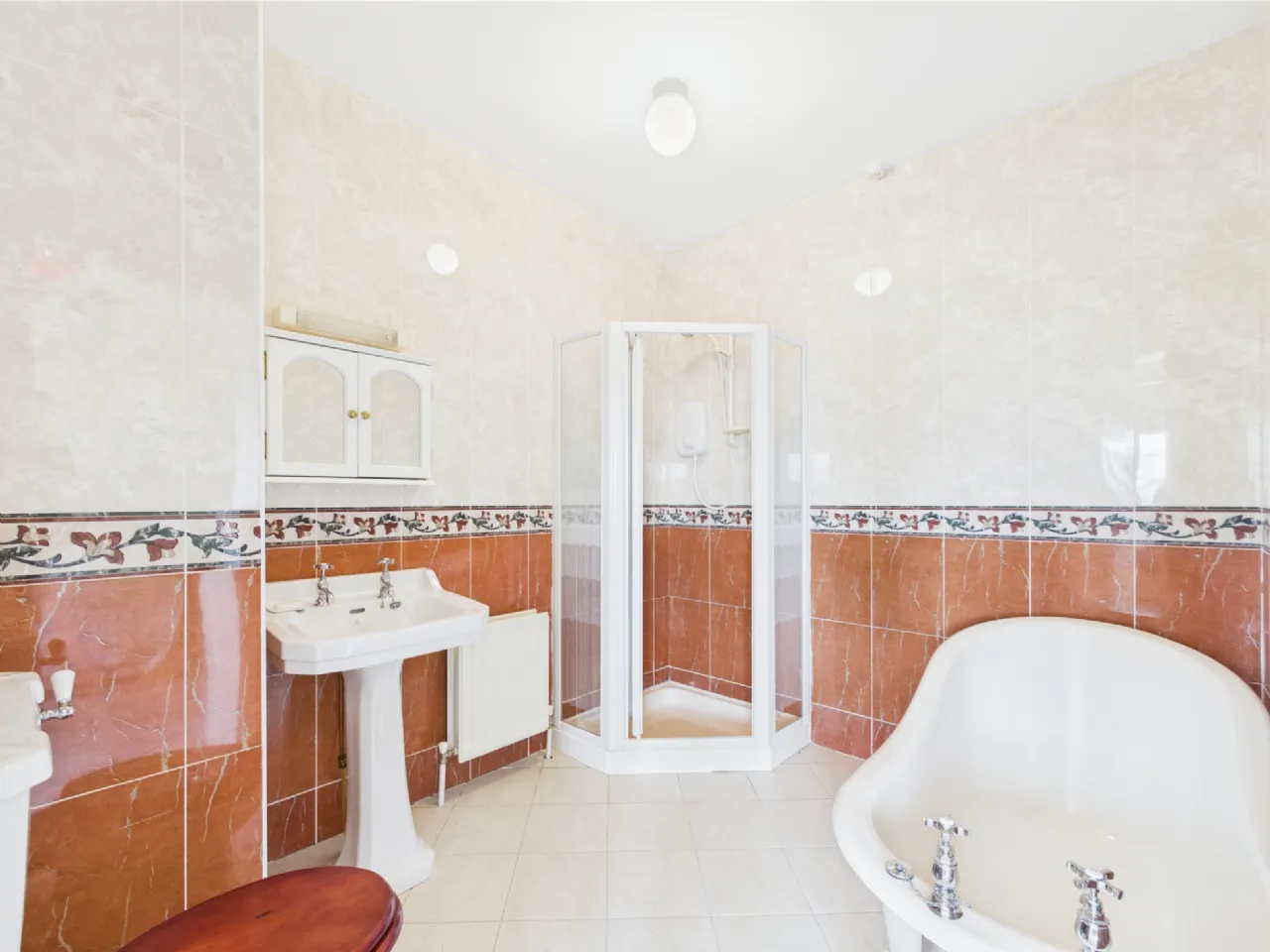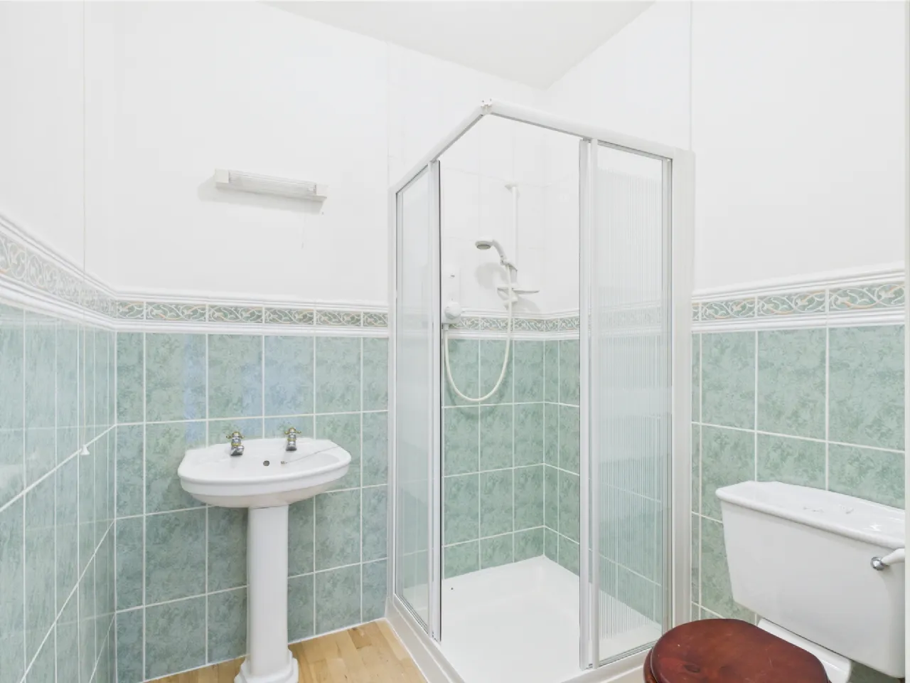 En-Suite 1.93m x 1.87m With W.C, W.H.B, Shower and tiled floor to ceiling