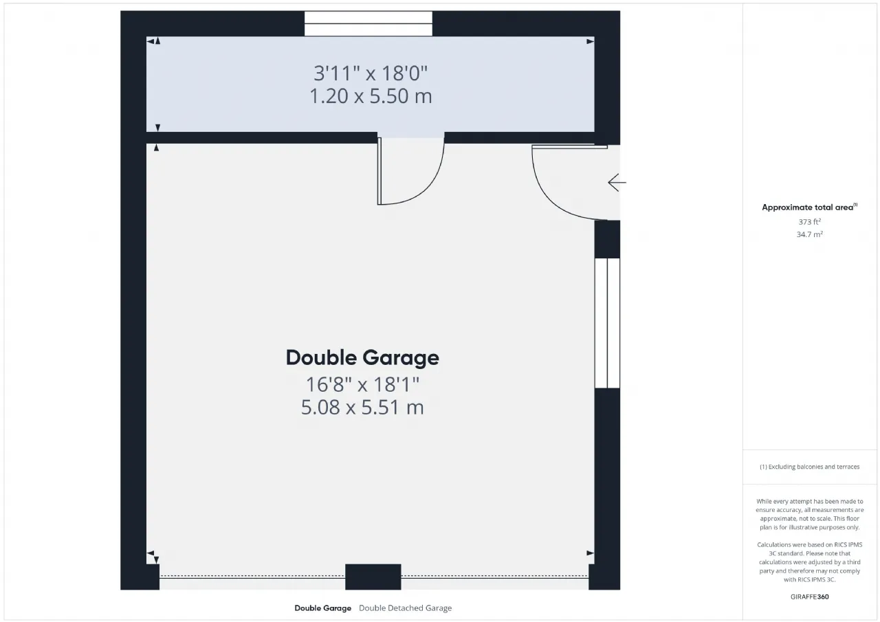 Detached Garage 5.08m x 5.51m Large Double Car Garage with Double electric roller shutter doors and storage room