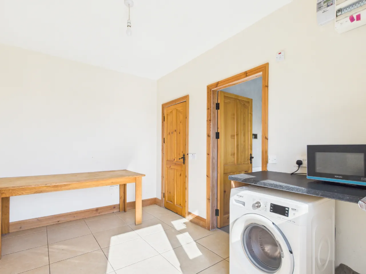 Utility Room 2.47m x 3.57m With tiled flooring, plumbed for washing machine and access hot-press and rear Garden