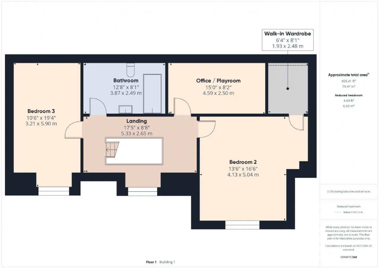 First Floor: Landing, 3 no. Bedrooms (one with Walk-in Wardrobe) and Bathroom