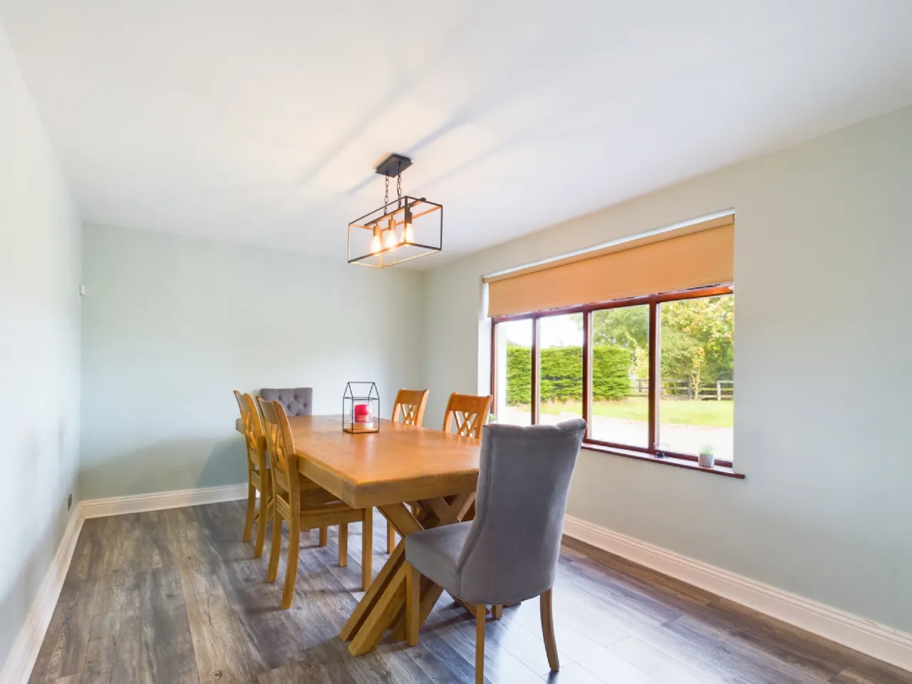 Dining Room 4.79m x 3.06m With laminate flooring and Serving Hatch to Kitchen