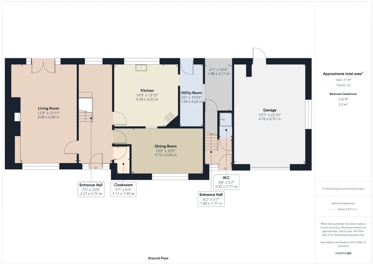 Cloakroom 1.11m x 1.95m With tiled flooring