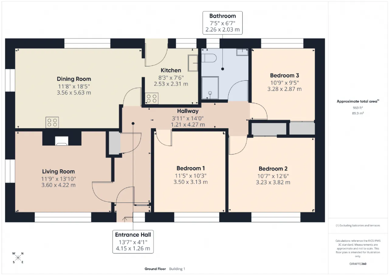 Approx. 969 sq.ft. / 89.9 sq.m, comprising: