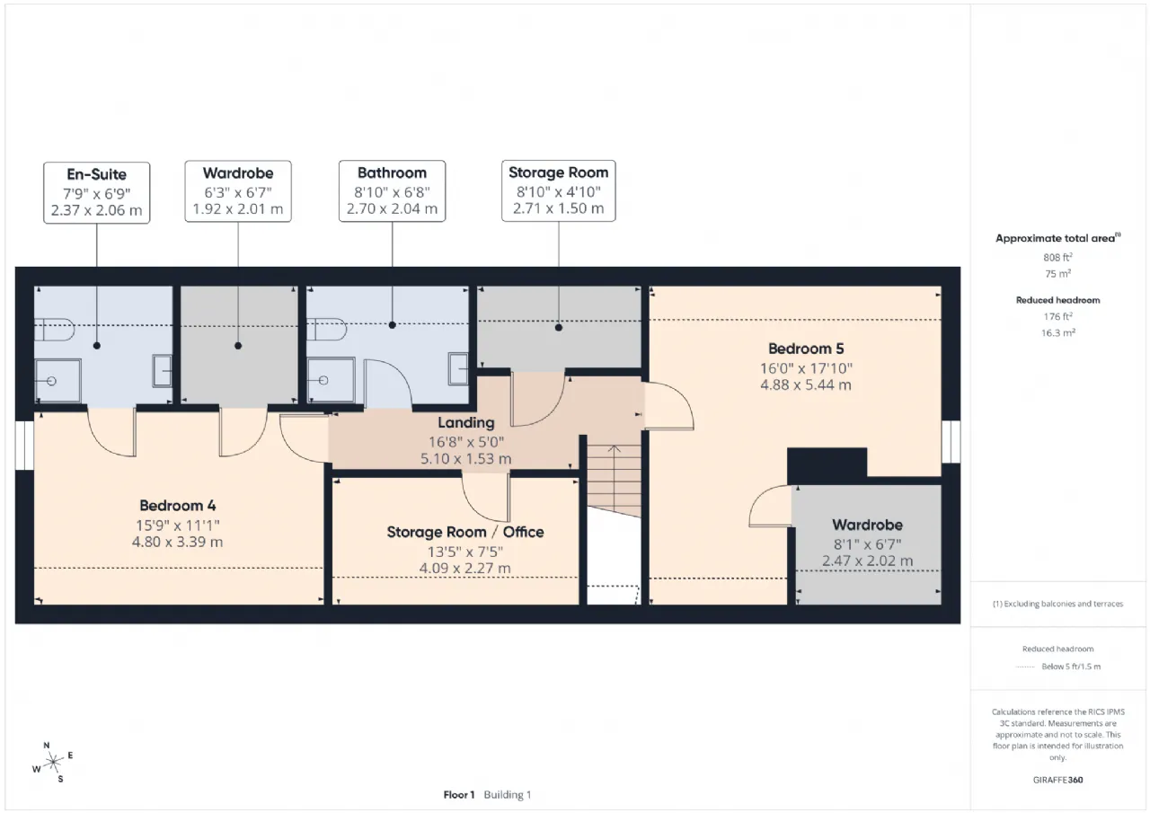 Landing 5.10m x 1.53m With access to attic.