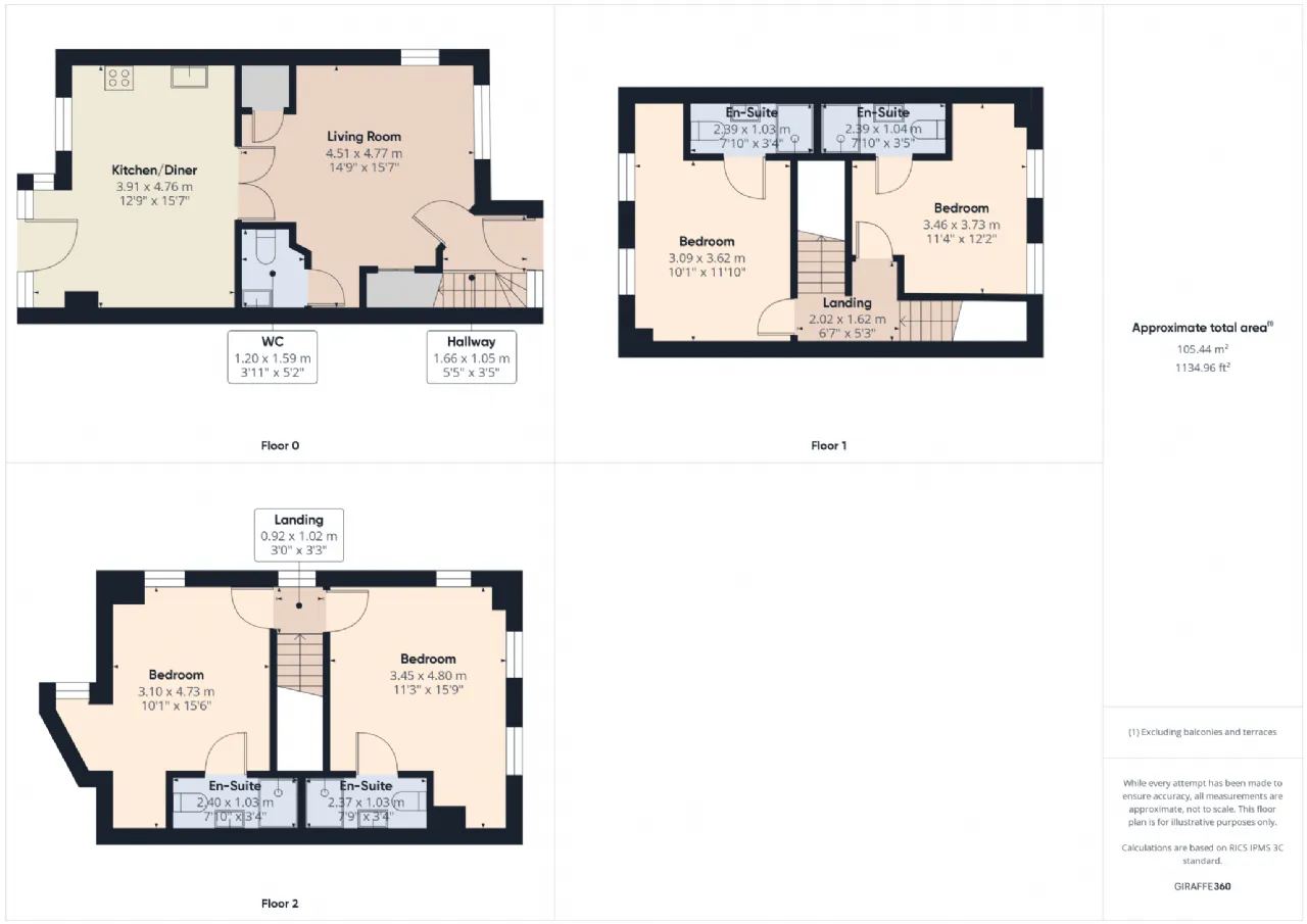 Both of the upper floors comprise of two sizable double bedrooms each of which has an en-suite and fitted wardrobes. The property benefits from gas-fired central heating, double glazed windows and doors throughout and off-street gated parking to the rear of the house.