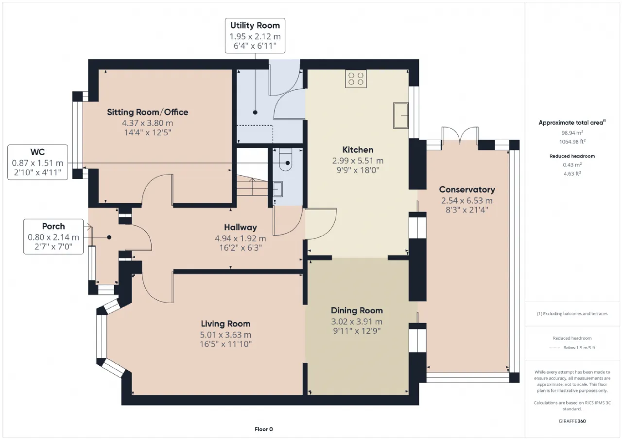 Utility Room 1.95m x 2.12m Tiled floors; door to rear.