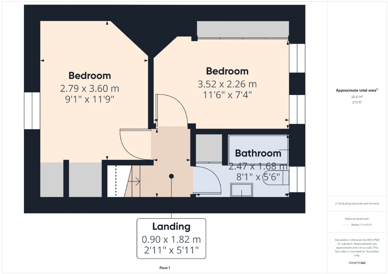 Continuing upstairs there is the main bathroom and two sizable double bedrooms.