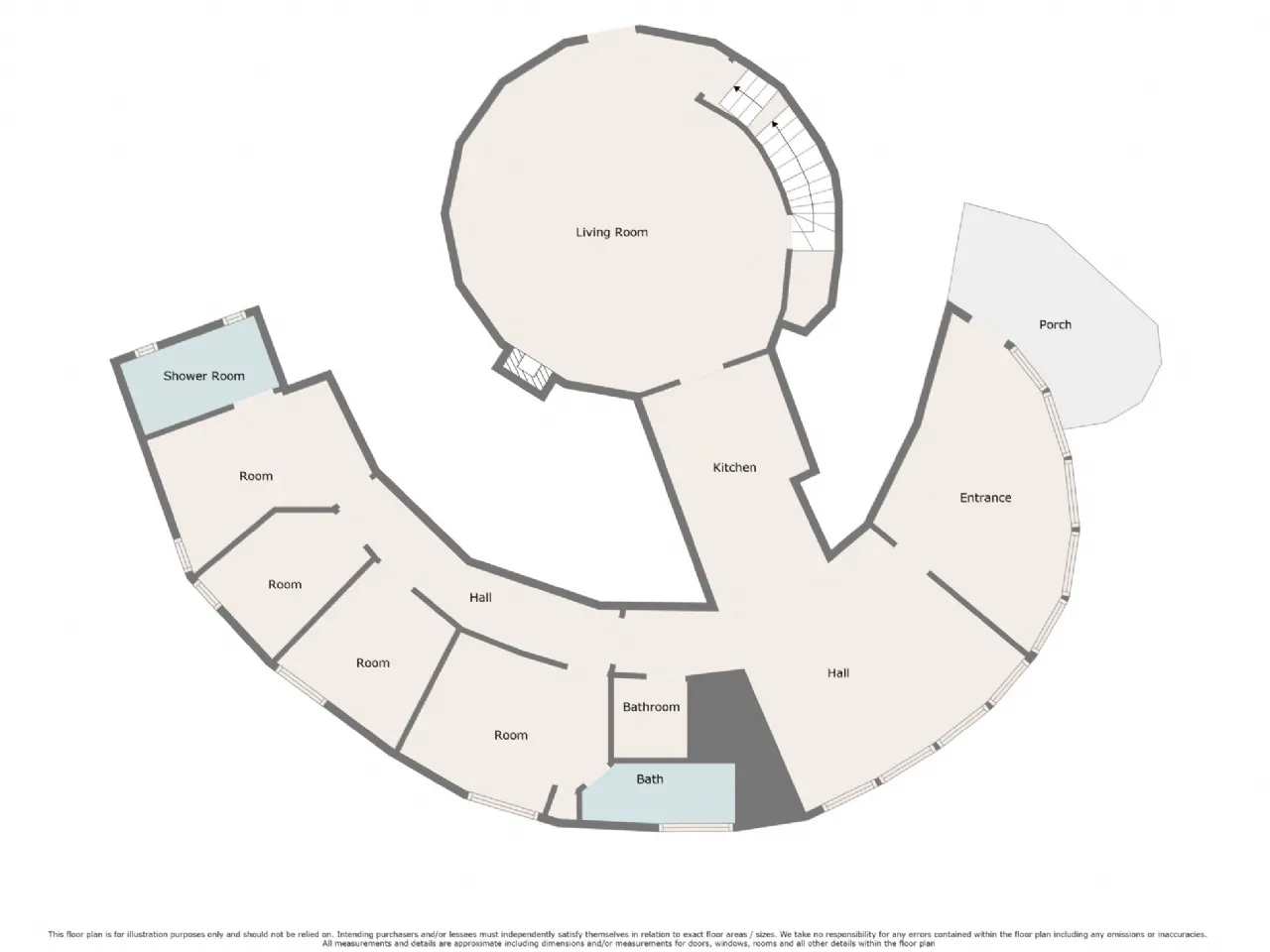 Room 1 (Entrance Hall) 4.08m x 4.49m approx. (13'5" x 14'9" approx.): Semicircular room with stunning views