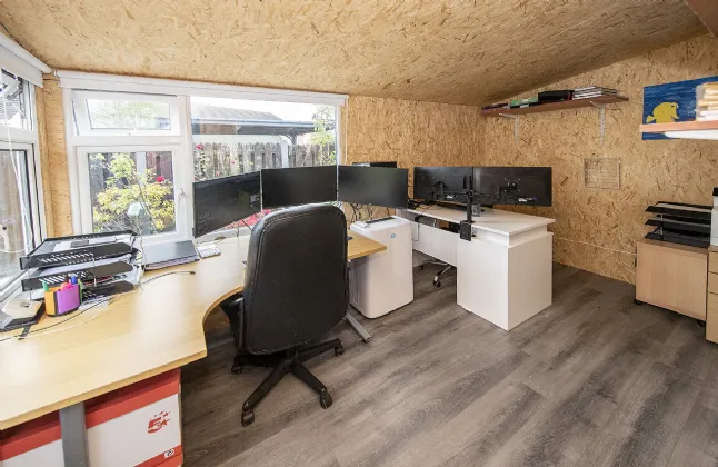 Garden Shed 3.86m x 4.88m Socket, lighting, electricity, internet and home office section.
