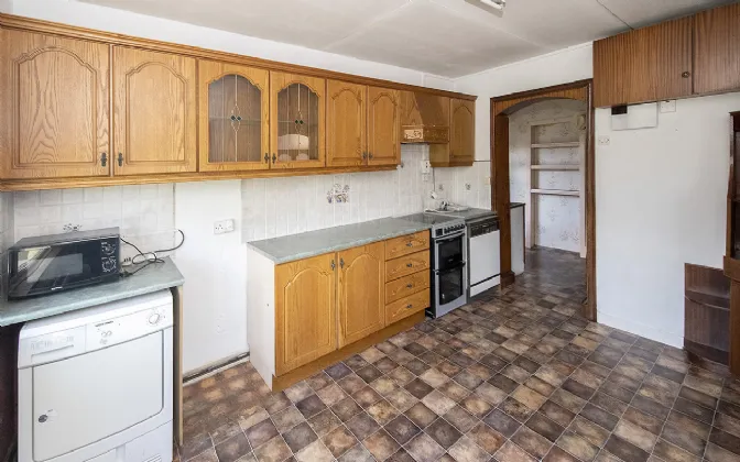 Inside, the lounge is located to the front and has an open fireplace. This is a spacious room and looks out on the front garden. The kitchen/dining is to the rear and has fitted units and a large window looking onto the garden. This garden is most private with a south facing aspect and enclosed by mature hedging and trees to the rear.