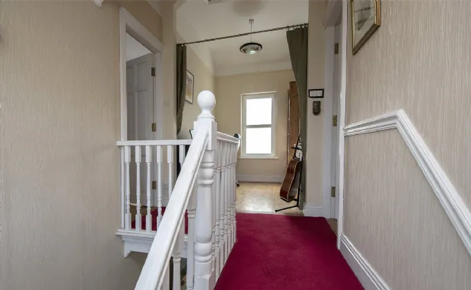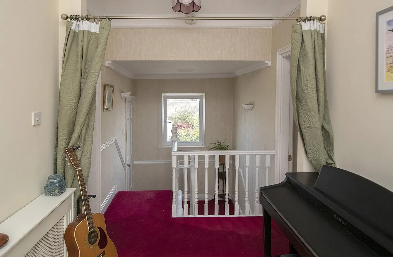 Landing 6.05m x 2.1m Floor carpet, walls painted, window to the rear, centre light, smoke alarm.