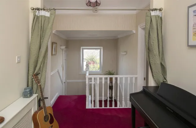 Study/Music Area 2.62m x 2.1m Floor solid oak, walls painted, window to the front with centre light, access to the attic.