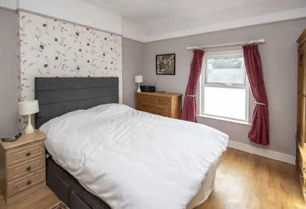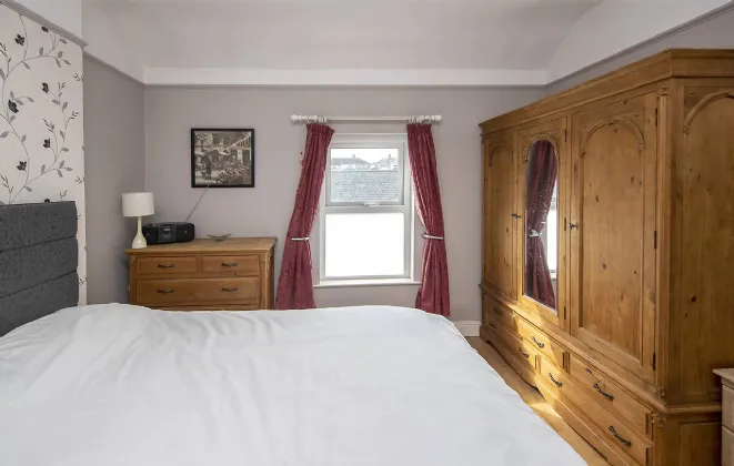 Bedroom One 3.89m x 3.63m Floor solid oak, walls painted and wall papered, window to the front with net curtains and curtains, telephone point, centre light.