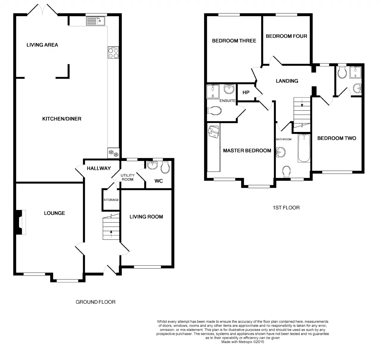 The property has both a living room and lounge to the front, the large open plan kitchen/dining /living room to the rear has a modern kitchen with integrated appliances and plenty of storage space to offer, it is very spacious and bright with glass panel double doors leading out to the rear garden. There is also a downstairs w.c. and utility room. Upstairs the four bedrooms (two ensuite) and bathroom are generous in size are nicely decorated. The enclosed rear garden is lawned and private, with a secure side entrance. There is ample private parking.