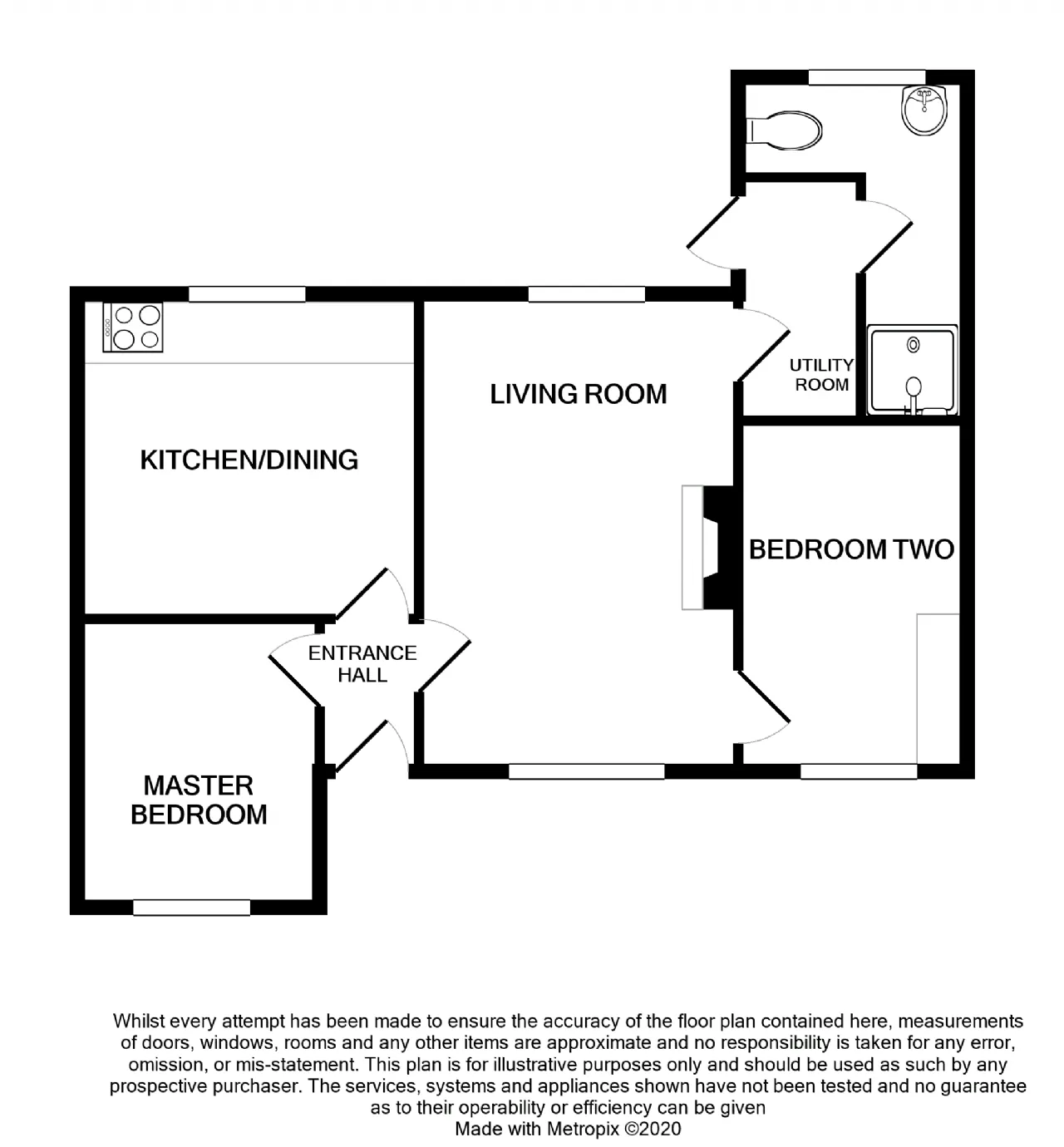 Acc: Ent. hall, living, kit.,/dining, utility, 2 beds, shower room. 51 sq.m. (550 sq. ft.) approx.
