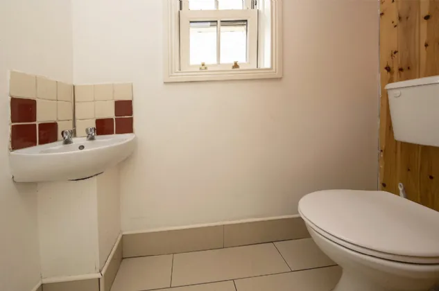 Downstairs WC 1.85m x 0.79m Floor tiled, walls painted, opaque sash window to the side, whb, wc, extractor fan.