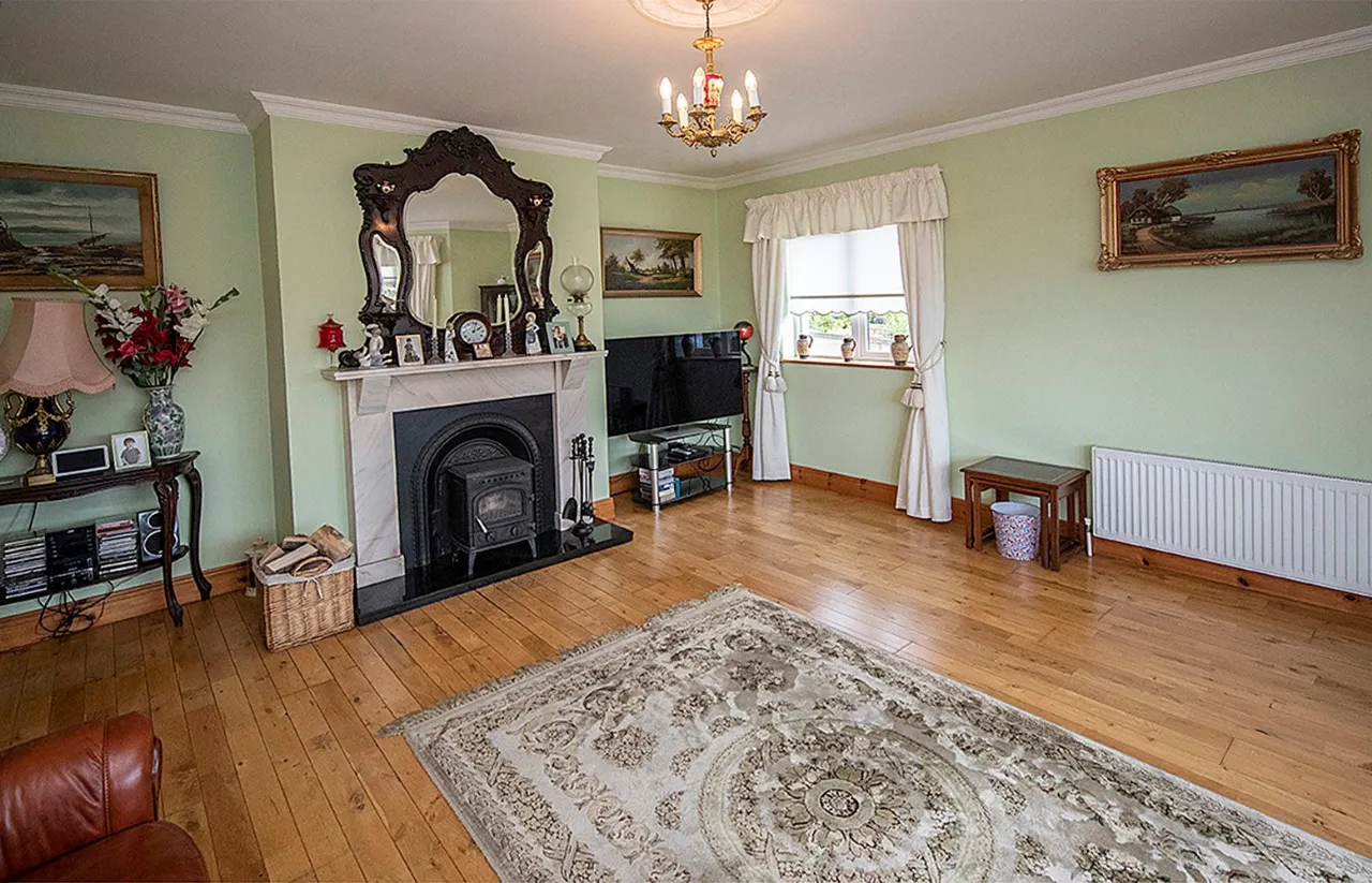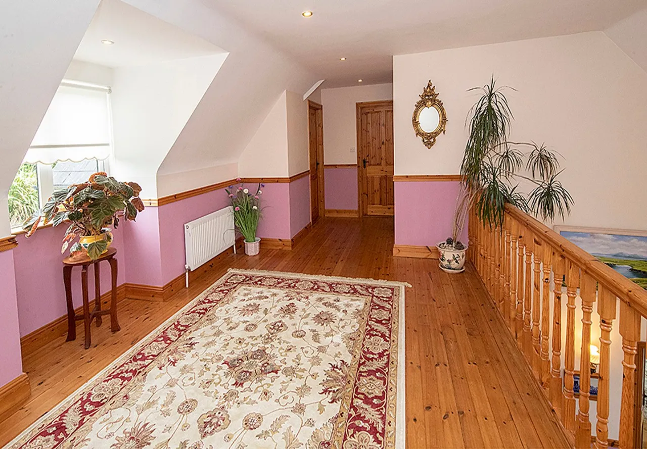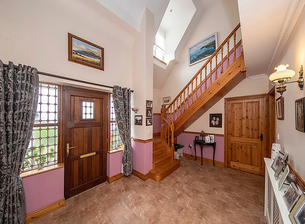 Built in 2005, the property boasts a pristine interior with an abundance of living space. On entering the property one is greeted by a spacious entrance hall with a feature staircase. The living room is off the hall and is a fine size room with an open fireplace.