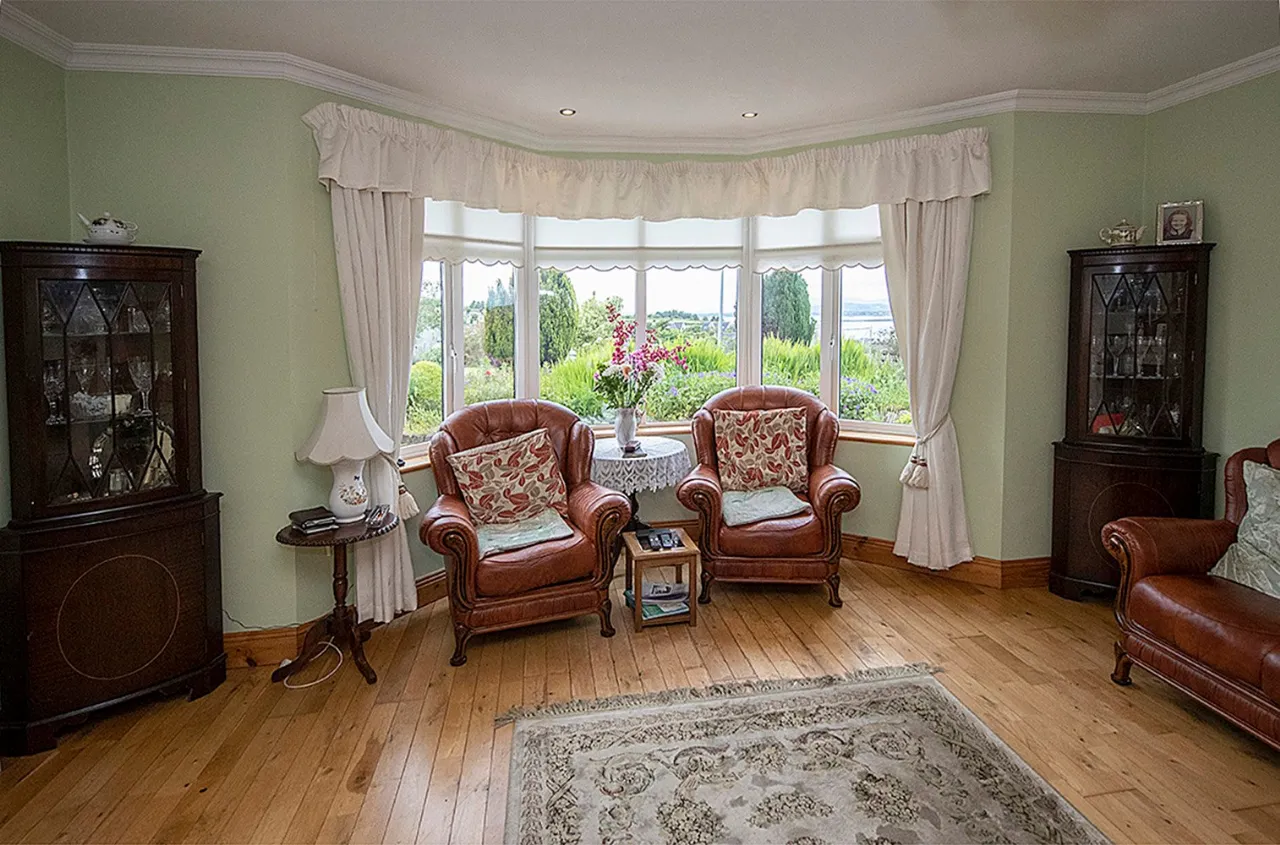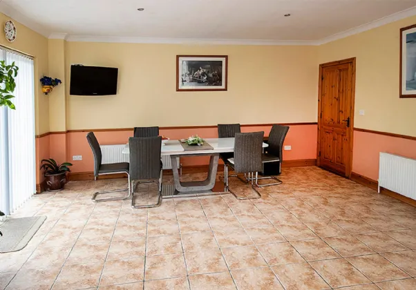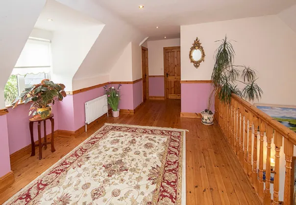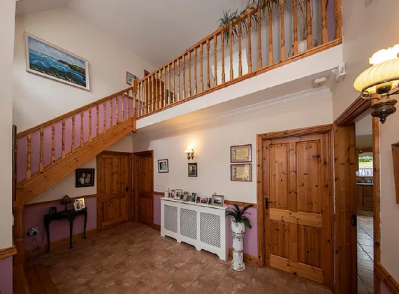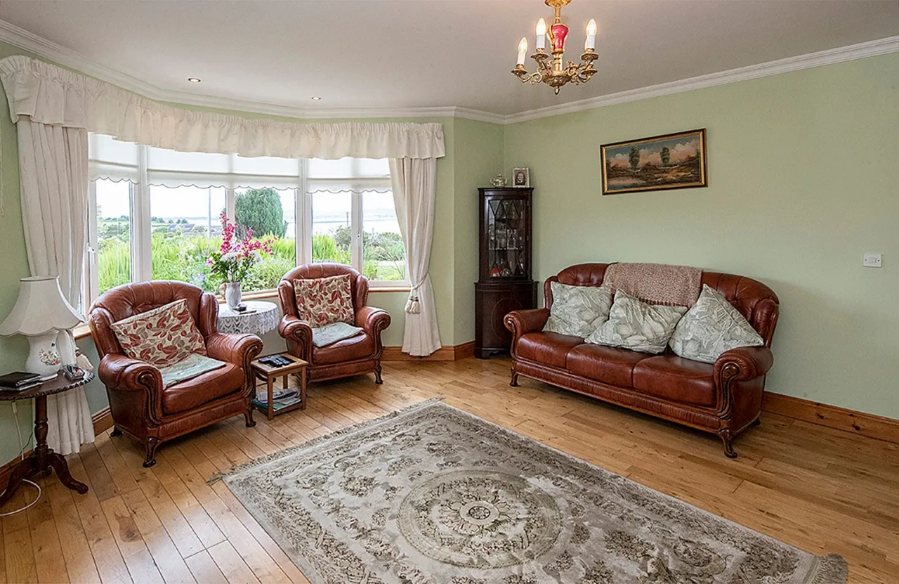 Built in 2005, the property boasts a pristine interior with an abundance of living space. On entering the property one is greeted by a spacious entrance hall with a feature staircase. The living room is off the hall and is a fine size room with an open fireplace.