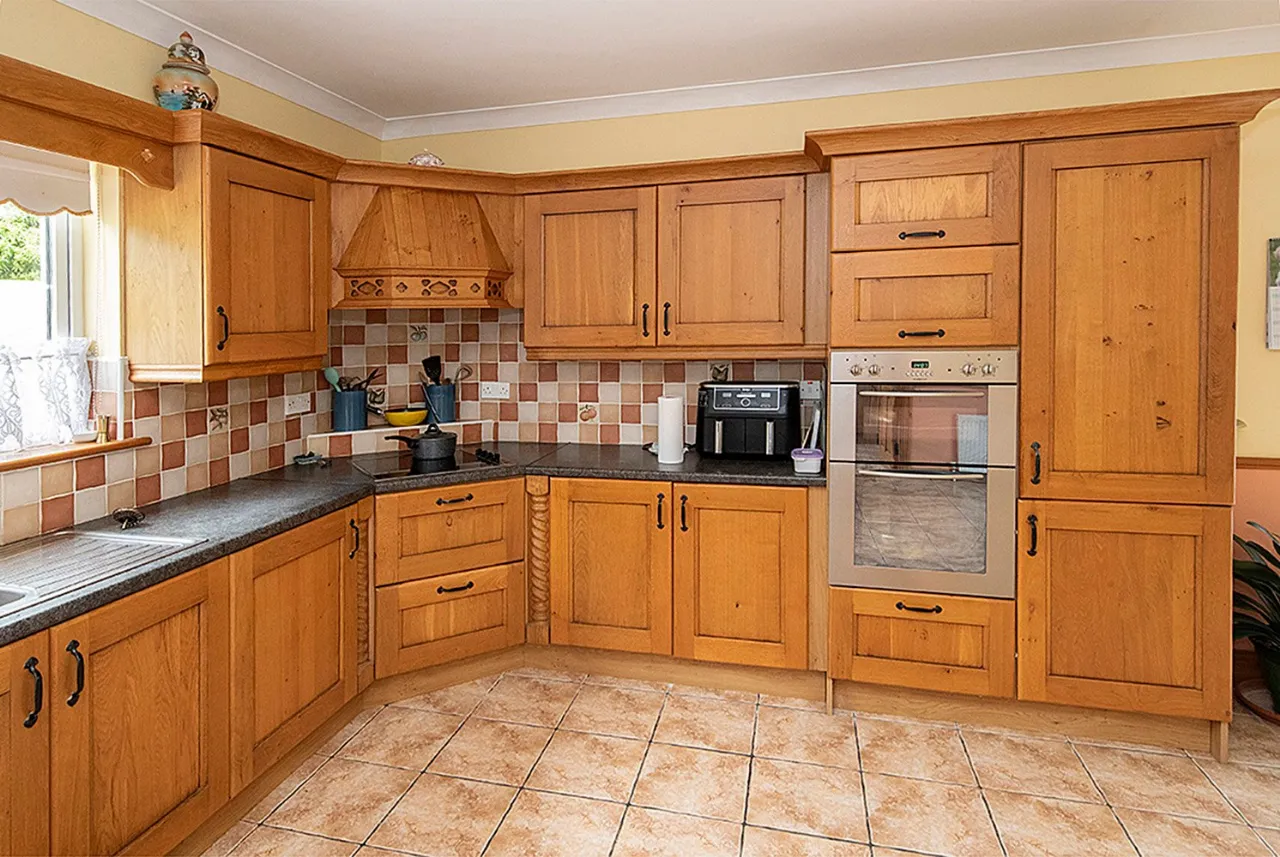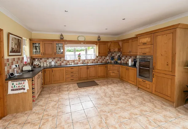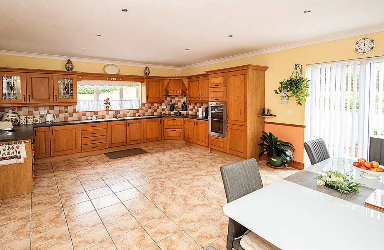 The kitchen/dining room is to the rear and is a real family room with a large dining area and modern solid oak fitted units. Just off the kitchen there is a fully equipped utility room.