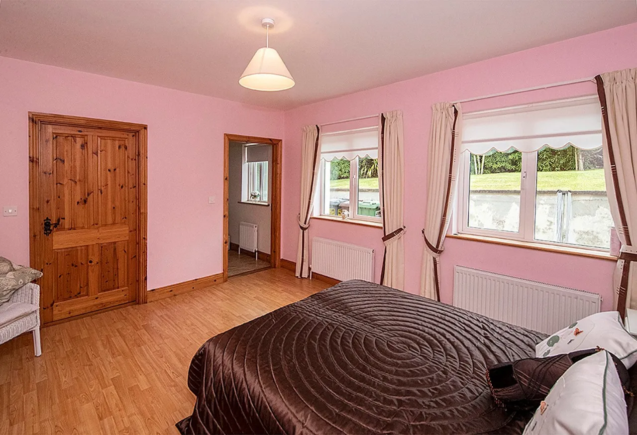 There are two bedrooms on the ground floor with the rear bedroom being a very large room with ensuite and wardrobe closet.