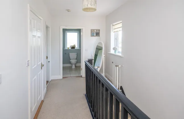 Landing 3.89m x 2.08m Carpet floor, painted walls, window to the side, centre light, hot press, smoke alarm, access to attic.