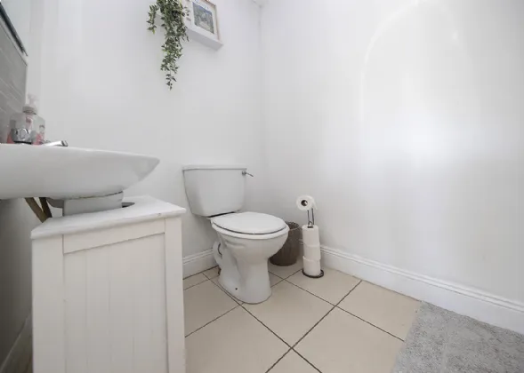 Downstairs W.C. 1.35m x 1.98m Tiled floor, painted walls, opaque window to the side, whb, w.c., centre light.